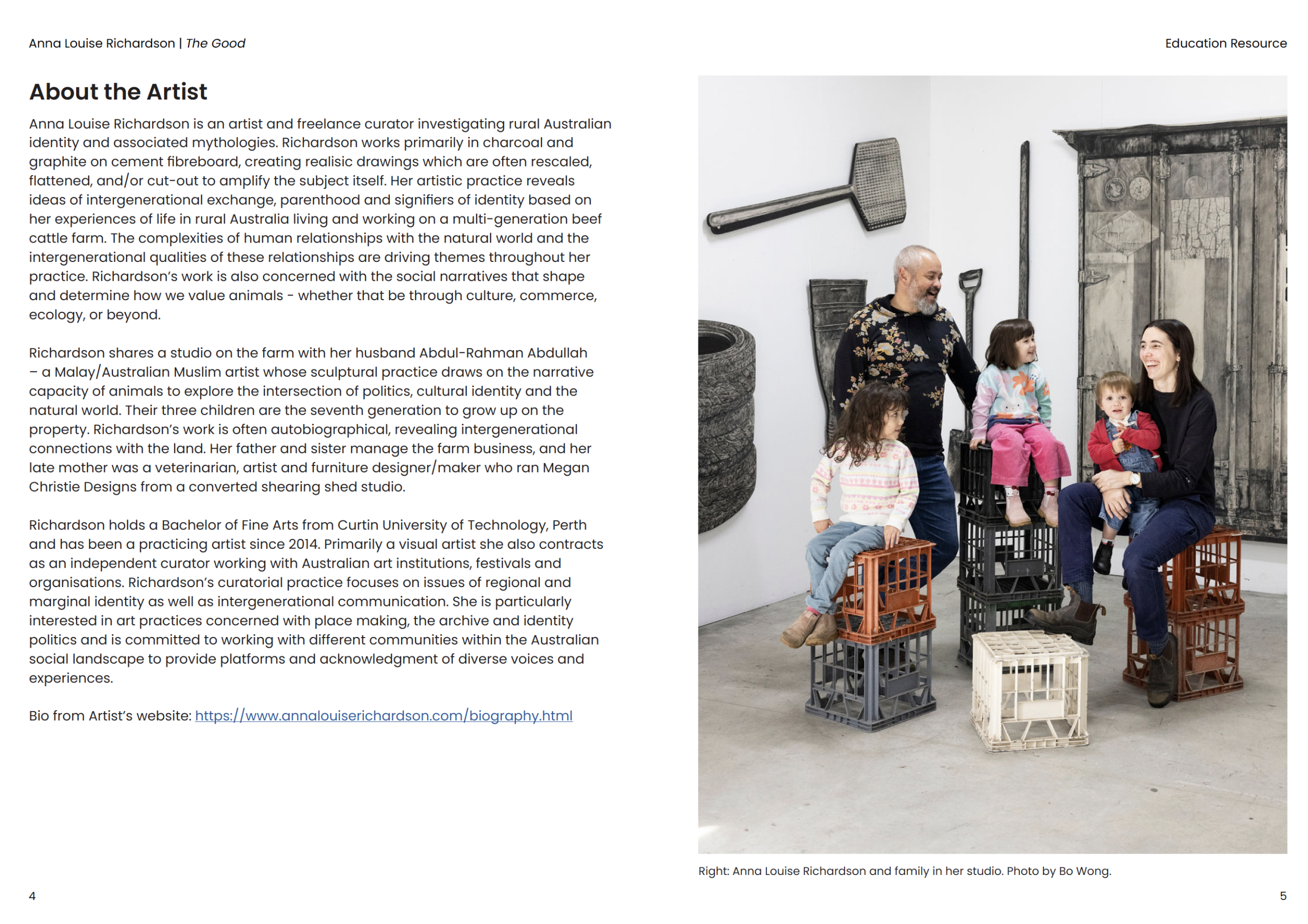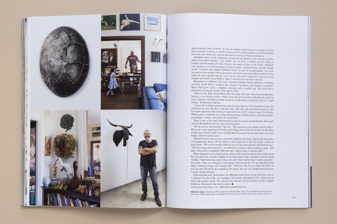 Anna Richardson and Abdul-Rahman Abdullah are independent artists, husband and wife, and long-term collaborators. Drawing on their respective family heritages, their practices focus on animals, family, and farm life. Both artists are represented by commercial galleries and are held in public collections.