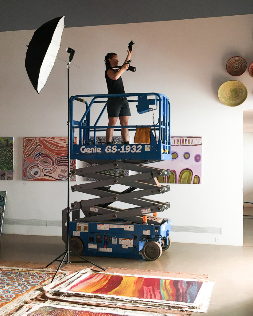 Since 2014, I’ve been working with staff at Martumili Artists in Newman, supporting the smooth cataloguing of artworks in this busy art centre. Representing 7 remote communities in the Pilbara, Martumili Artists includes an art production studio, gallery, retail space, and on-country programs.